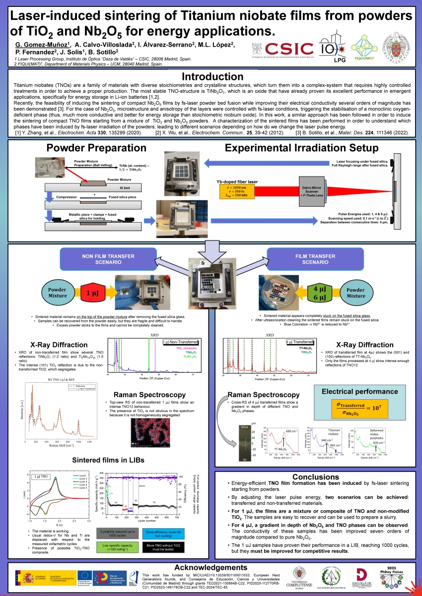 Laser-induced sintering of Titanium niobate films from powders of TiO2 and Nb2O5 for energy applications